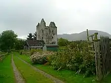 Murdo Mackenzie was granted the lands of Fairburn near Inverness and other farms on 1 April 1542.[11] For the hearths of each homestead on the estate he was to pay the feudal duty of a hen, called a "reik hen." He was instructed to build a new house, Fairburn, with orchards and a garden.[12] After he married Mariobelle or Margaret Urquhart, in 1549 Mary, Queen of Scots gave him more land in the parish.[13] A translation of Mackenzie's charter is given in the Origines Parochiales.[14] Murdo Mackenzie died on 20 December 1590 and wished to be buried with his forebears in Beauly Priory.