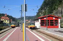 In the late 1980s, class 628 diesel multiple units (DMUs) were used alongside the locomotive-hauled trains on the Murg Valley Railway, but they were not approved to operate over the steep section and therefore could only operate between Rastatt and Baiersbronn.[8] In the interim, class 627.0 DMUs took over operations between Baiersbronn and Freudenstadt.[9]