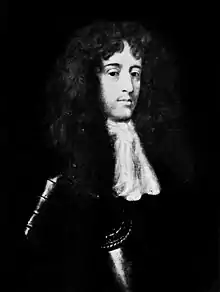 Charles II was at this time in Holland, and Inchiquin was called upon to defend himself against many charges brought by Sir Lewis Dyve, but soon withdrawn as without foundation.[68] Charles investigated the matter in Paris after his escape from Worcester, and on 2 April 1652 wrote himself to Inchiquin to declare his confidence in him.[69] On 11 May he was made one of the royal council, "of whose company," Edward Hyde wrote, "I am glad; who is, in truth, a gallant gentleman of good parts and great industry, and a temper fit to struggle with the affairs on all sides that we are to contend with".[70] But neither the Queen mother Henrietta Maria, Jermyn, nor Wilmot, Earl of Rochester liked the new appointment. In 1653 Inchiquin sought the command of all Irish soldiers in France; but this was opposed by the Irish clergy, who told the nuncio that he was a "murderer of priests, friars, and such like";[71] but he had either one or two regiments under him.[72] In May 1654 he received the earldom which he had spurned ten years before.[73] At this time the exiled king's council consisted of eleven persons, divided into two parties. The majority consisted of Ormonde, Rochester, Percy, Inchiquin, Taafe, and Hyde, who controlled the whole policy. Henrietta Maria, the Duke of York, Rupert, the Duke of Buckingham, and Jermyn were the minority.[74]