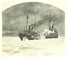 On 16 April 1889, two steamships were spotted approaching the lighthouse of Russarö from the south and news about unidentified vessels coming through the ice field began spreading immediately. The ships were the icebreaker Bryderen and a 912-ton cargo steamer Vesuv,[10] owned by the Danish shipping company, that was following on the channel broken by the icebreaker. During the following night, the icebreaker lost all four propeller blades, but once the replacement blades had been installed, the convoy arrived at the port of Hanko on 20 April 1889 at 13:00. Large headlines in the major Finnish newspapers reported how the ice blockade had finally been broken – a foreign icebreaker had come through the ice and was now moored at a Finnish port.[11] The successful arrival of Bryderen was seen as the definite answer to the question whether or not an icebreaker would be needed in Finland.[12]