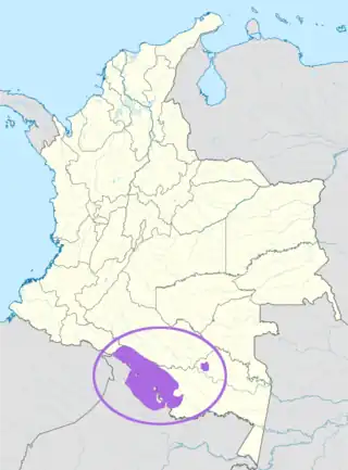 Murui Huitoto (or simply Murui also known as Bue, Witoto Murui or Witoto) is an indigenous American Huitoto language of the Witotoan family. Murui is spoken by about 1,100 Murui people along the banks of the Putumayo, Cara-Paraná and Igara-Paraná rivers in Colombia.[2] In Peru it is spoken in the North alongside the Ampiyacu and Napo rivers by some 1,000 people.[3] Some Murui speakers live also outside their territories, for instance the vicinity of Leticia, Amazonas, Colombia.
