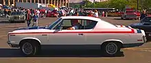 The fastest muscle car produced by American Motors was the mid-sized 1970 AMC Rebel "The Machine", which was powered by a 390 cu in (6.4 L) engine producing 340 hp (254 kW).[70] The Rebel had a 0–60 mph (97 km/h) time of 6.8 seconds and a quarter-mile run in 14.4 seconds at 99 mph (159 km/h).[71]