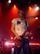 Before the release of the new album, Muse made several promotional TV appearances starting on 13 May 2006 at BBC Radio 1's Big Weekend. The Black Holes and Revelations Tour started before the release of their album and initially consisted mostly of festival appearances, including a headline slot at the Reading and Leeds Festivals in August 2006.[45] The band's main touring itinerary started with a tour of North America from late July to early August 2006. After the last of the summer festivals, a tour of Europe began, including a large arena tour of the UK.[45] Muse recruited an additional touring member, Morgan Nicholls, on keys, percussion and guitar; he performed with them until 2022.[46]
