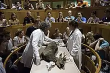 ![]() The anatomical theatre at Leiden University in the early 17th century |