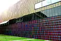 The building with its long, two-storey, rectangular structure and multi-coloured facade composed of 36,000 vertical ceramic louvres in 23 different coloured glazes, was created by Sauerbruch Hutton architects and is located next to the Pinakothek der Moderne in the Kunstareal. The building has three exhibition areas which are connected by stairs. All galleries (with the exception of the Media Suite) have white walls and wooden floorboards of Danish oak.