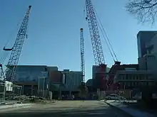 Preliminary construction began on November 13, 2006, with the selective demolition of four West Main Street buildings.[6] The facades of 615-621 West Main were to have been saved to serve as an entrance to a "pedestrian promenade and retail corridor." The buildings were abandoned, having been purchased by the Parking Authority of River City in 2001 for a "grand entrance" for the failed 30-story Vencor Tower, which since-abandoned plans had located on the same site as planned for Museum Plaza.