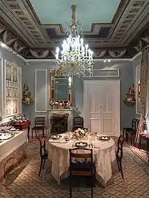 The building, dating from the late 18th-century, consists of two stories plus an attic floor, which is not open to the public.