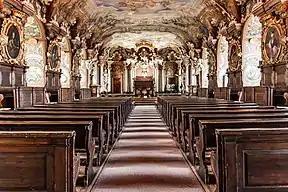 • pl:Aula Leopoldina, the biggest and most representative hall in the main building, is the only secular Baroque interior in Poland with full decor - illusionist wall paintings by Johann Christoph Handke of Olomouc, decor and sculptural elements by Franz Mangoldt of Moravia and Italian master de:Ignatius Provisore - which has been so well preserved.