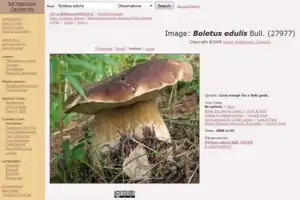 Mushroom Observer is a collaborative mycology website started by Nathan Wilson in 2006.[1] Its purpose is to "record observations about mushrooms, help people identify mushrooms they aren't familiar with, and expand the community around the scientific exploration of mushrooms".[2]