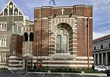 The chapel, built in 1907, was designed by Joseph Munnings while he was in partnership with Samuel Hurst Seager and Cecil Wood. It is one of the only examples of Byzantine revival architecture in the Southern Hemisphere.[1] The three-storey main convent building, designed in 1882 by Francis Petre is the oldest building in the complex. It was opened in 1894. The Portery was added in 1902 to extend the convent. It was restored with the girls’ boarding hostel for Sacred Heart College, constructed in 1930. Both buildings became part of the music centre in 2004. The chapel was the primary performance space.