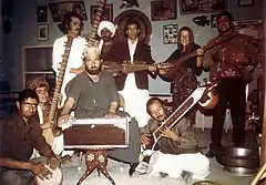 The Indian classical tradition was a hugely influential strain. The vast majority of the elite artists in Afghanistan until the 1980s were trained in the Indian classical tradition. Ustad Sarahang, Rahim Bakhsh, Ustad Nashenas and many other singers were prominent adherents of this style. This style emphasized compositions in the Indian raga style and the singing of Ghazals in melodies very similar to Indian classical and court music. The classical musical form of Afghanistan is called klasik, which includes both instrumental and vocal and belly dancing ragas, as well as Tarana and Ghazals.[7] Many Ustads, or professional musicians, have learned North Indian classical music in India, and some of them were Indian descendants who moved from India to the royal court in Kabul in the 1860s.[5] They maintain cultural and personal ties with India—through discipleship or intermarriage—and they use the Hindustani musical theories and terminology, for example raga (melodic form) and tala (rhythmic cycle). Afghanistan's classical singers include the late Ustad Mohammad Hussain Sarahang (1924-1983), who is one of the master singers of Patiala Gharana in North Indian classical music and is also well known throughout India and Pakistan as a contemporary of Ustad Bade Ghulam Ali Khan. His composition "Pai Ashk" was used in the theme song of the Hindi film Mera Saya. Ubaidullah Jan Kandaharai is regarded as the king of Pashto music in the southern Afghanistan region. He died in the 1980s but his music is still enjoyed by the Pashtun diaspora around the world, mainly by the Pashtuns in the Kandahar-Quetta regions. Other classical singers are Ustad Qasim, Ustad Rahim Bakhsh, and Ustad Nato.