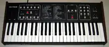Clavivox, developed since 1952, was a kind of keyboard synthesizer with sequencer. On its prototype, a theremin manufactured by young Robert Moog was utilized to enable portamento over 3-octave range, and on later version, it was replaced by a pair of photographic film and photocell for controlling the pitch by voltage.[22]