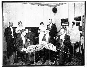 "From eight to twelve in the morning, announcement of special bargain sales at the leading stores is made, and the principal news items are read from the morning papers including the United States weather report, stock market quotations, announcements of special events happening during the day, etc. At twelve o'clock the announcement of standard Western Union time is made. From twelve to one-thirty is given up to a musical program, especially adapted to cafes, restaurants, dining rooms, etc., and following this is a running description of ball games of the home team and scores by innings of other teams in both leagues during the baseball season. In winter lectures by prominent people will be obtainable besides language lessons in French, German, Italian, etc., and a period will be set aside for the reading of children's stories. A half hour's music for dancing will be offered each evening."[8]