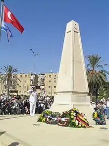 A commemorative plaque was placed at the base of the monument. This plaque was previously located nearby at the Beer Sheva War Cemetery for British and ANZAC soldiers who died in the same battle.