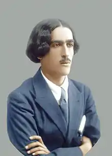 Mustafa Wahbi Tal was born in Irbid, Syria Vilayet, Ottoman Empire on 25 May 1899 to an illiterate father and a mother that was "blasphemously stubborn" according to his friend and biographer Ya'qoub Al-Oudat. He was named Mustafa as namesake of his grandfather and Wahbi was added to his birth name per Ottoman tradition. From a young age, Tal suffered from Rhotacism, a speech impediment characterized in the inability to pronounce 'r' sounds.[1] His family were Sunni Muslims, descended from the Bani Zaydan tribe which migrated from Najd in Arabia to the Levant around the 18th century; his family was called Tal because a member of the tribe, Yousef Abbas, had settled in Amman, next the city's Citadel, which was built on a hill or 'tal' in Arabic. Three decades later they relocated to Irbid and remained there.[2]