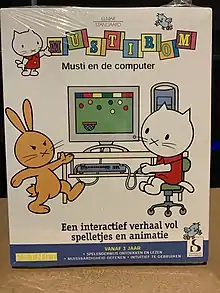 Musti is a little 4-year-old kitten, living with his mother and father in a little house in a rural village, surrounded by a large garden with animals and trees. Musti's mouth is represented as an x.[1] Musti was first created in 1969, though rumors stated that he was created in 1945. The character has been featured in animated TV series since then.