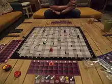 Mutant Meeples is a game for two to six players. The game is played on a rectangular grid of 18×18 squares.