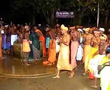 Also one of the important ritual actions performed by the devotees of Ayyavazhi is to take this ritual bath, drawing water from the well. This has become a ritual necessity to be gone through, before one worships at the Pathi. It is overwhelming to see the devotees throng the well to get a few buckets of water on to them and drink a few drops ceremoniously for five times and then proceed to the Pathi. This practice of bathing at the well is being addressed as Patham viduthal.