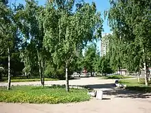 To the west of the square goes Vtoroy Murinskiy Prospekt (Rus. for 2nd Murino Avenue, Murino being a now redeveloping village at the northeast boundary of the city, with several lanes and streets named after it in the vicinity on the way to the settlement). The avenue also reaches at its western end Prospekt Engelsa, at Svetlana Square, from which another major road goes westwards into the residential areas of the former Commandant's Airfield (Komendantskiy aerodrom) and of the Long Lake (Ozero Dolgoye).