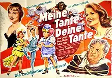 My Aunt, Your Aunt (German: Meine Tante, deine Tante) is a 1956 West German comedy crime film directed by Carl Boese and starring Theo Lingen, Hans Moser and Georg Thomalla.[1] Boese had previously made a 1939 film of the same title. It was shot in Agfacolor at the Bavaria Studios in Munich. The film's sets were designed by the art directors Hertha Hareiter and Otto Pischinger.