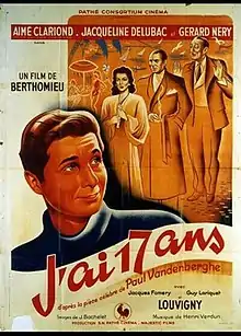My First Love (French: J'ai dix-sept ans) is a 1945 French comedy drama film directed by André Berthomieu and starring Jacqueline Delubac, Aimé Clariond and Madeleine Suffel.[1] It was based on a play of the same title by Paul Vandenberghe. The film's sets were designed by the art director Raymond Nègre.