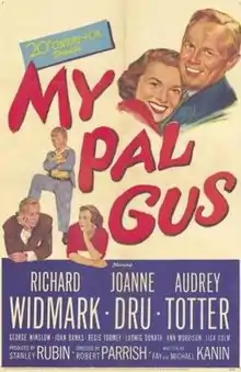 My Pal Gus is a 1952 American comedy drama film directed by Robert Parrish which follows Gus (George Winslow), the young son of divorced industrialist Dave Jennings (Richard Widmark). Unable to cope with Gus' mischievous streak, Jennings places the boy in a day-care center. Gus' teacher Lydia Marble (Joanne Dru) manages to curb the boy's prankishness, and along the way falls in love with Jennings. Enter the villainess of the piece: Jennings' ex-wife Joyce (Audrey Totter), who claims that the divorce is invalid and demands a huge sum from Jennings, lest she claim custody of Gus.