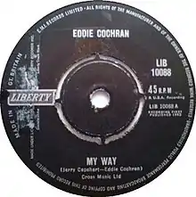"My Way" is a song co-written and recorded by Eddie Cochran. It was recorded in January 1959 and released posthumously as a single on Liberty Records in April 1963.[1] In the UK the single reached number 23 on the charts.[2]