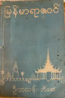 The book was based on Ba Than's many years' experience as a history teacher, and the research he had done over the years. He had consulted several Burmese chronicles, primarily Hmannan Yazawin and Maha Yazawin, Burmese history books written by British historians (including A.P. Phayre, S.W. Cocks and G.E. Harvey) as well as English translations of Siamese and Lan Na history.[1] He had wanted to bring a more complete textbook than those in use at the time when most Burmese vernacular schools used a Burmese translation of Cocks's A Short History of Burma or an abridged version of the Hmannan chronicle by Ba Tin of Mandalay.[2] He completed the book in 1929 in Kangyidaunt,[3] and published it in 1930.[4]