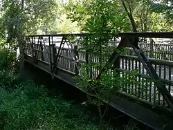 The Mynard Road Bridge, now located near Ashland, Nebraska, is a historic Warren truss leg bedstead bridge that was built in 1900. It was probably built by J.R. Sheeley and Company, of Lincoln, Nebraska and was listed on the National Register of Historic Places in 1992.[1][2] The 50-foot (15 m) Mynard Road Bridge was the longest of its engineering type remaining in the state of Nebraska when the historic inventory was done in 1992, and was still used for vehicular traffic at that time.[2] The bridge was originally situated on the Maynard Road and was built to span an unnamed stream, 4.7 mi (7.6 km) southeast of Louisville, Nebraska.[2] In 2000, the bridge was relocated to be used as a pedestrian bridge at the Lee G. Simmons Conservation Park and Wildlife Safari.[3]