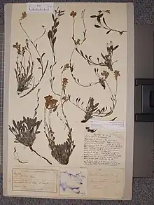 Multiple specimens of original material (syntypes) of Myosotis goyenii were collected in different localities in Otago, New Zealand by Peter Goyen (from Arrowtown) and Donald Petrie (from the Cardrona Valley and Lake Hawea). The lectotype was designated by Carlos Lehnebach,[6] and is lodged at the herbarium of the Museum of New Zealand Te Papa Tongarewa (WELT SP002484).[7][5]