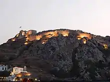 Myrina (Greek: Μύρινα) (Also known as Kastro) is a former municipality on the island of Lemnos, North Aegean, Greece. Since the 2011 local government reform it is part of the municipality Lemnos, of which it is a municipal unit.[2] It covers the west coast of the island, and has a land area of 82.049 square kilometres (31.679 sq mi),[3] about 17.2% of the island's area. Its municipal seat was the town of Mýrina (pop. 5,107 at the 2001 census), located in the middle of the island's west coast. The town is also the capital of Lemnos, as well as the seat of the Metropolitan (Greek Orthodox bishop) of Lemnos. In addition to the town of Myrina, the municipal unit includes the communities of Káspakas (792), Platý (785), Thános (451), and Kornós (267). The 2011 census recorded 5,711 residents in the town and 8,006 residents in the municipal unit.[1]