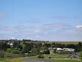 ![]() Myrniong seen from the west. The Western Freeway can be seen to the right. | |||||||||||||||
