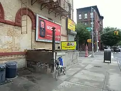 Both platforms formerly had another same-level entrance/exit at their south ends and directional signs indicate they led to Willoughby Avenue.[4] The spaces are blocked with chain link fences and some of the single street staircases on each side remain intact.