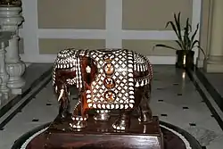 Mysore Rosewood Inlay covers a range of techniques used by artisans in around the area of Mysore in sculpture and the decorative for inserting pieces of contrasting, often coloured materials like ivory shells, mother-of-pearl, horn and sandalwood into depressions in a rosewood object to form ornament or pictures that normally are flush with the matrix. These artifacts are manufactured in around the region of Mysore, these artifacts have been awarded Geographical Indication tag from the Government of India in 2005 due to its historic representation as an artifact depicting the region and the design and style used by the local artisans [1][2][3]