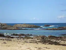 Mystery Bay holds many different types of beaches that front the Tasman Sea. Some beaches are surfing beaches, others are swimming beaches, and many of these beaches contain spectacular large rocks. At low tide, these rocks become rock pools. The rocks and sedimentation of these beaches along the Coastline of Mystery Bay show that there is evidence of tsunami destruction.[5] The area today is still popular amongst the Indigenous community for fishing and camping.[6]