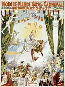 A mystic society is a Mardi Gras social organization in Mobile, Alabama, that presents parades and/or balls for the enjoyment of its members, guests, and the public.[1] The New Orleans Krewe is patterned after Mobile's Mystics.[2] The societies have been based in class, economic and racial groups.[1] Mobile's parading mystic societies build colorful Carnival floats and create costumes around each year's themes.