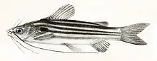 Mystus vittatus, the striped dwarf catfish, is a species of catfish of the family Bagridae.[3] It is found in brackish water systems with marginal vegetation in lakes and swamps with a mud substrate of Asian countries Pakistan, India, Sri Lanka, Nepal, Bangladesh and probably Myanmar. Populations of Southeast Asian countries is in debate, due to close morphological similarities among Mystus species in that region.[3]