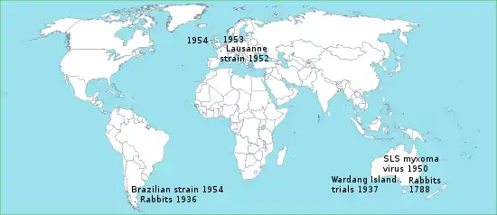 Rabbit and myxomatosis introductions around the world with dates