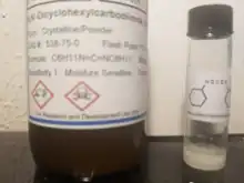 N,N′-Dicyclohexylcarbodiimide (DCC or DCCD)[1] is an organic compound with the chemical formula (C6H11N)2C. It is a waxy white solid with a sweet odor. Its primary use is to couple amino acids during artificial peptide synthesis. The low melting point of this material allows it to be melted for easy handling. It is highly soluble in dichloromethane, tetrahydrofuran, acetonitrile and dimethylformamide, but insoluble in water.