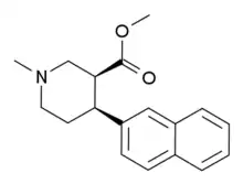 N,O-Dimethyl-4β-(2-naphthyl)piperidine-3β-carboxylate (DMNPC) is a piperidine based stimulant drug which is synthesised from arecoline. It is similar to nocaine in chemical structure, and has two and a half times more activity than cocaine as a dopamine reuptake inhibitor. However it is also a potent serotonin reuptake inhibitor, with similar affinity to fluoxetine.[1]