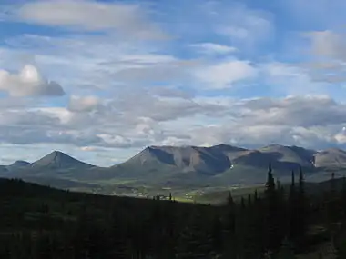 Náátsʼihchʼoh National Park Reserve (/ˈnætsiːtʃoʊ/ NATS-ee-choh)[2] is a Canadian national park reserve encompassing parts of the South Nahanni River watershed in the Northwest Territories. The name means "stands like a porcupine" in the Dene language.[3] The national park reserve covers an area of 4,850 km2 (1,873 sq mi),[4] protecting the Sahtú Settlement Area of the upper South Nahanni River watershed, adjoining Nahanni National Park Reserve. The two areas are to be managed separately, similar to Banff and Jasper National Parks which are also side by side.[5] The South Nahanni watershed is home to several endangered species, including grizzly bears and boreal woodland caribou.[6] The area is also known for its moose, Dall sheep and the northernmost population of mountain goats in Canada.[3]