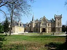 The Nádasdy Mansion is a Neo Gothic style manor house designed by István Linzbauer and Alajos Hauszmann situated on 24 hectares in Nádasdladány, Hungary. It dates from 1873 to 1876, and belonged to the Nádasdy family. It was used for the exterior of the vampires' mansion in the Underworld film series.