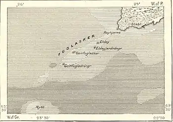 King Christian VII of Denmark named the island "Nýey", ordered an expedition to it, and dedicated it to the monarchy with a Danish flag. He also planned for an inscribed stone to be placed on the island.[1][2][3]