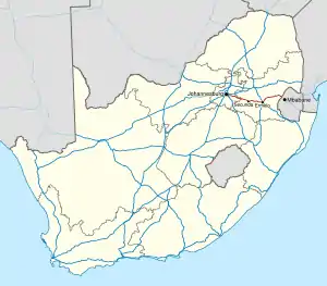 The N17 is a national route in South Africa which runs from Johannesburg to Oshoek (Ngwenya) on the border with Eswatini. It passes through Springs, Bethal and Ermelo.[1]