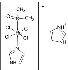 NAMI-A is the imidazolium]] salt of the coordination complex [RuCl4(dmso)(C3N2H4)]− where dmso is dimethylsulfoxide and C3N2H4 is imidazole Together with KP1019 and BOLD-100, NAMI-A has been investigated as an anticancer agent.[1][2][3]