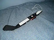 A miniature hockey stick peripheral was released with the game, allowing (but not requiring) the player to insert the Wii Remote and its Nunchuk attachment and simulate playing with a real hockey stick.[1][2]