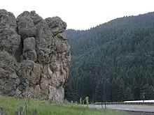 The coniferous forest traversed by NM 4 in its upper regions is prone to severe forest fires, several of which have burned up to the highway.[2] Unfortunately, the highway is too narrow to serve as an effective firebreak, and such devastating fires as the 1977 La Mesa Fire and 2000 Cerro Grande Fire, the most severe forest fire in the state's history, have jumped the road to destroy forests, and habitations, on both sides of the road—in the case of the Cerro Grande Fire, into the upper reaches of Frijoles Canyon, contributing significantly to the magnitude of the disaster caused by the fire.[3]