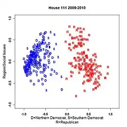 ![]() W-NOMINATE coordinates of members of the 111th House of Representatives. | |