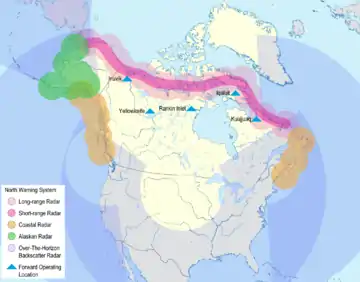 In 1989 NORAD operations expanded to cover counter-drug operations, for example, tracking of small aircraft entering and operating within the United States and Canada.[35] DEW line sites were replaced between 1986 and 1995 by the North Warning System. The Cheyenne Mountain site was also upgraded, but none of the proposed OTH-B radars are currently in operation.