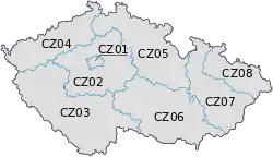 The Nomenclature of Territorial Units for Statistics (NUTS) is a geocode standard for referencing the subdivisions of the Czech Republic for statistical purposes.[1] The standard is developed and regulated by the European Union.[2] The NUTS standard is instrumental in delivering the European Union's Structural Funds. The NUTS code for the Czech Republic is CZ and a hierarchy of three levels is established by Eurostat. Below these is a further levels of geographic organisation - the local administrative unit (LAU). In the Czech Republic, the LAU 1 is districts and the LAU 2 is municipalities.